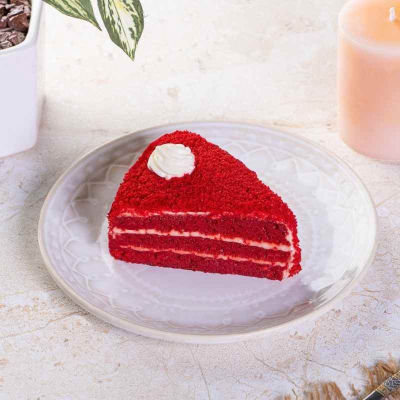 Indulge in a classic for a reason. Our Red Velvet Slice is a rich, moist cake with a hint of cocoa, known for its iconic deep red hue. Each bite is incredibly tender and perfectly complemented by a generous layer of our signature tangy, sweet cream cheese frosting. It’s an elegant, velvety-smooth treat that’s perfect for any occasion.